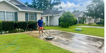 Utilizes a high-pressure system to remove unwanted build up from driveways, sidewalks, curbs, parking lots, ect.